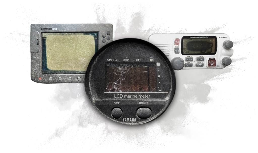 Marine electronics, Chartplotters, VHF radios, Sounders, Engine Gauges, Personal WaterCraft gauge clusters,  ATVs and UTVs dash instruments, Snowmobiles gauges, Industrial and Heavy Equipment Machine Controller displays  are just a few examples of devices we can restore.  If your device has an LCD and we can get to it, there’s hope!  We also perform backlight repairs, replace lenses and LCDs (on select models), as well as polishing and some minor electrical repairs.