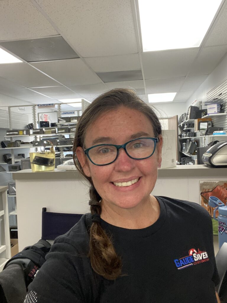Covering the front lines at Gauge Saver, Justine…..not Justin….works hard to keep the shop in check! When she can get a break from working she loves being a mother, playing speed racer and hunting with her hubby.